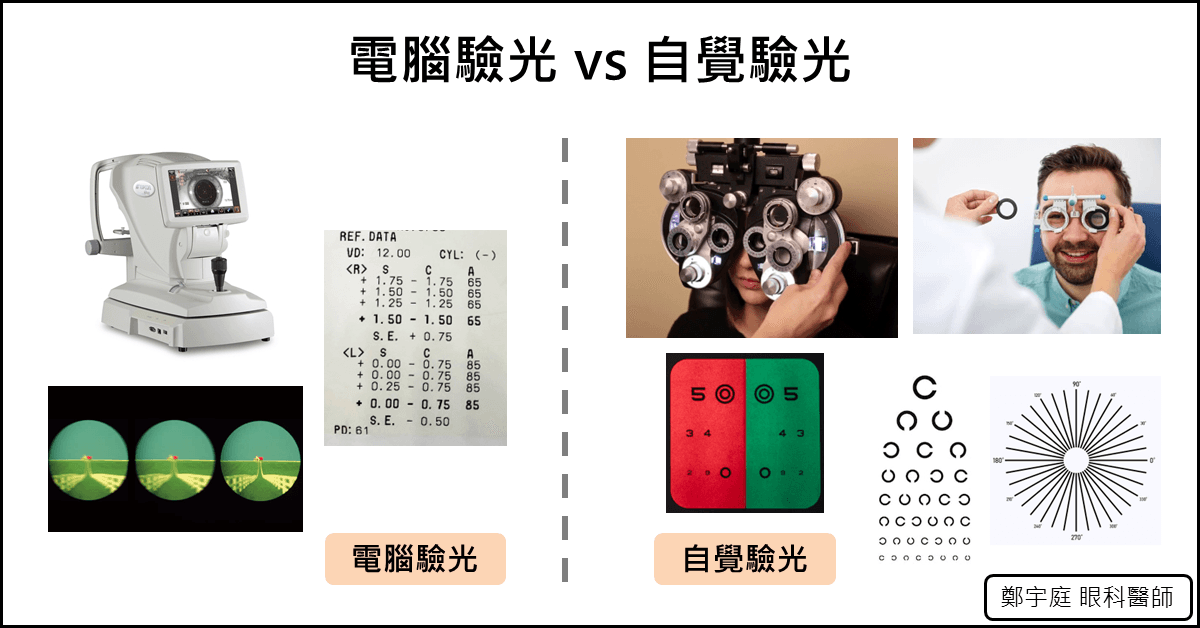 眼睛的度數有很多種,很多人常常搞不太清楚「電腦驗光」與「自覺驗光」度數差別在哪裡,驗光解說時也不一定會詳細解釋。