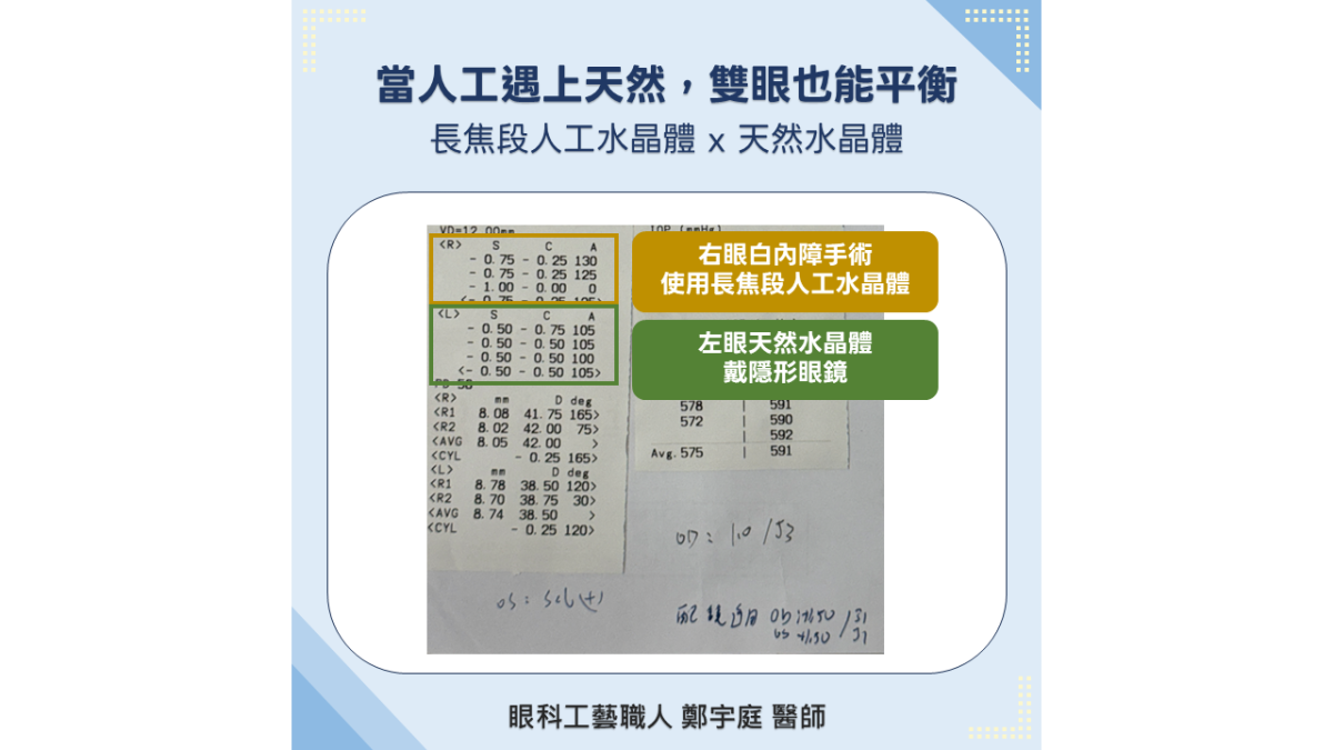 只開一眼白內障也可以?長焦段人工水晶體單眼植入的真實案例