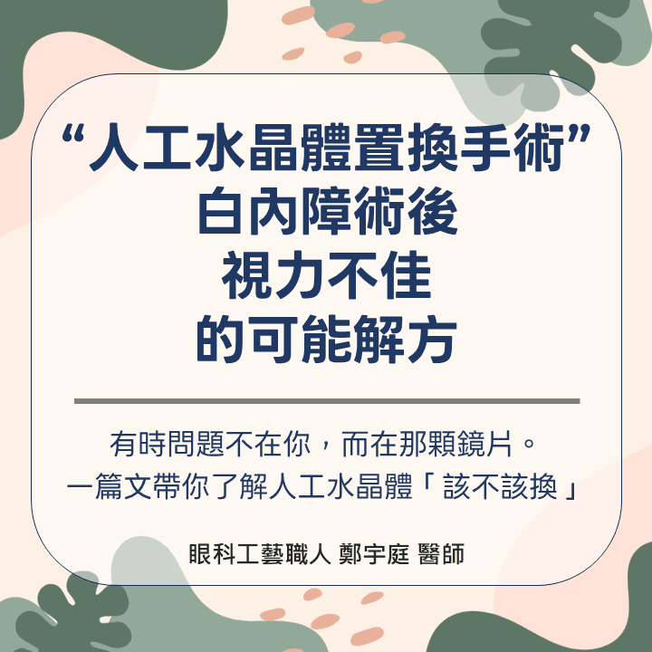這些問題若明確影響視力或生活品質,就可考慮進行 IOL 置換手術,重新選擇與眼睛條件匹配的鏡片,或採用更穩定的固定方式。
